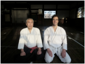 Shihanke Takatsuka Eichoku, waar ik bij ging trainen, heeft op het moment zelf geen eigen dojo tot zijn beschikking, waardoor hij uitwijkt naar de Kashihara budokan, op ongeveer 45 minuten rijden van zijn woonplaats. De jonge vent die me bij de eerste ontmoeting was komen ophalen, bleek een zoon te zijn, die mee was gekomen om te dienen als mijn uke en de gehele training hadden we